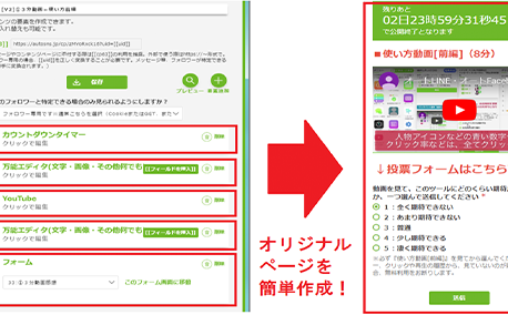 コンテンツページでは、ランディングページ(登録ページ)、動画等のコンテンツ配信ページ、会員専用サイトを『パワーポイントより簡単な操作』ですぐに作れます。