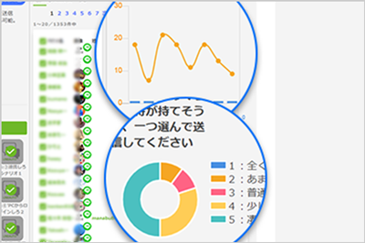 さらに、メッセージ内に埋め込んだプルダウンまたは、ラジオボタンも自動で直感的なグラフとして表示が可能です。
