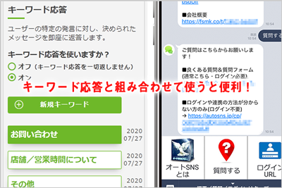 また、キーワード応答と組み合わせて自動応答するボットを作成すれば、顧客対応の自動化を実現できます。